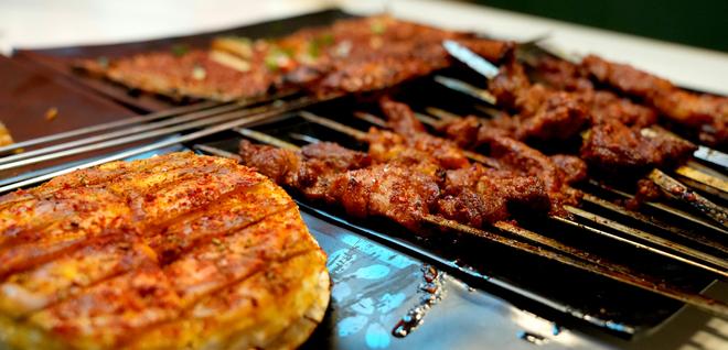 新疆烧烤的魅力,在于其对食材本味的极致尊重。在广袤的戈壁与草原上长大的羊群,因食用富含碱性的牧草,肉质自然鲜嫩而不腥膻。新疆烧烤的特色在于大块切肉、直接上火烤制。这种粗犷的烹饪方式,能够最大程度地锁住肉内的汁水,保持肉质的鲜嫩多汁。