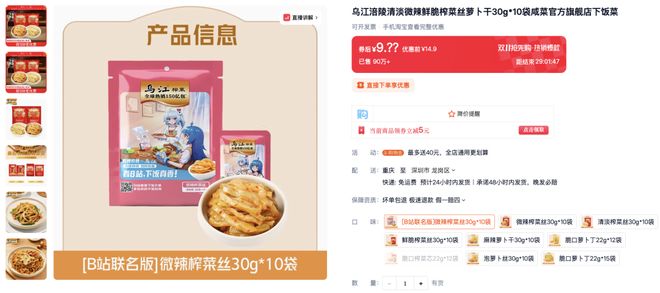 乌江涪陵清淡微辣鲜脆榨菜丝萝卜干30g*10袋,拍三件 22.9元包邮。